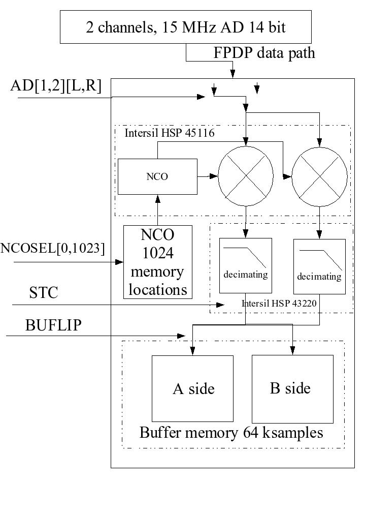 This is a simplified block diagram of a channel board. More about the tarlan syntax can be found in the document: The Tartan Language More about the internal of the channel boards are found in the document: Digital Signal Processing: Channel Boards